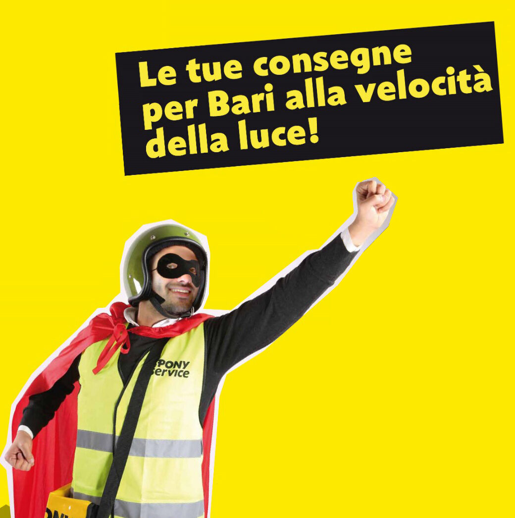 PonyService è un’azienda dinamica e in costante crescita, con sede a Bari. La nostra flotta diversificata, composta da furgoni, motocicli e veicoli elettrici, insieme a un team di professionisti esperti, ci permette di offrire soluzioni di trasporto e logistica adatte a ogni tipo di esigenza. Siamo autorizzati dal Ministero dello Sviluppo Economico, a garanzia della nostra professionalità e affidabilità.